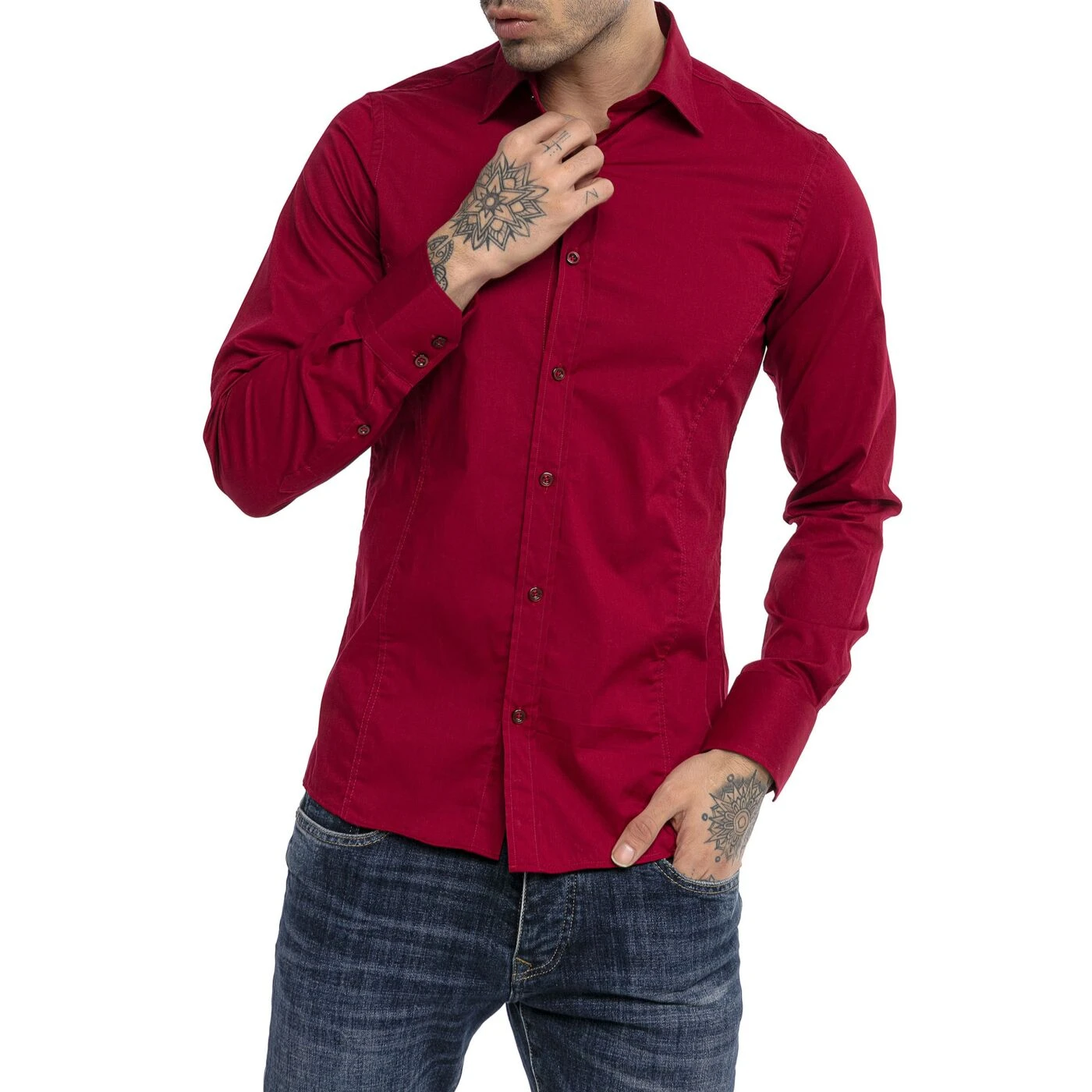 Red Bridge Herren Basic Design Slim Fit Langarm Hemd Bordeaux