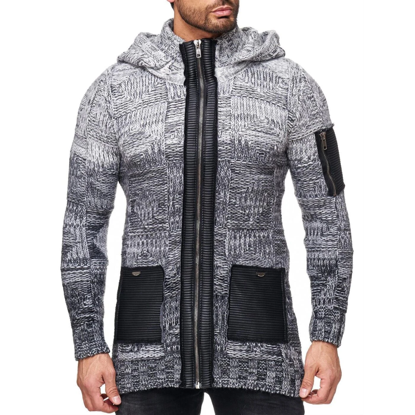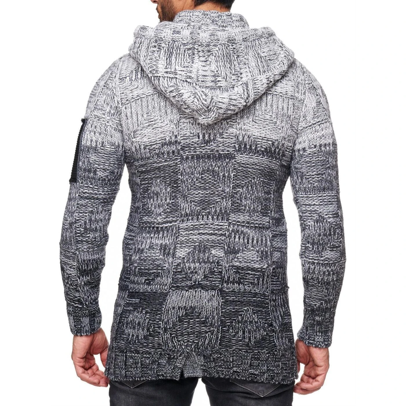 Lang geschnittene/r, warme/r Red Bridge Herren Strickjacke – Pullover mit Stehkragen und abnehmbarer Kapuze.