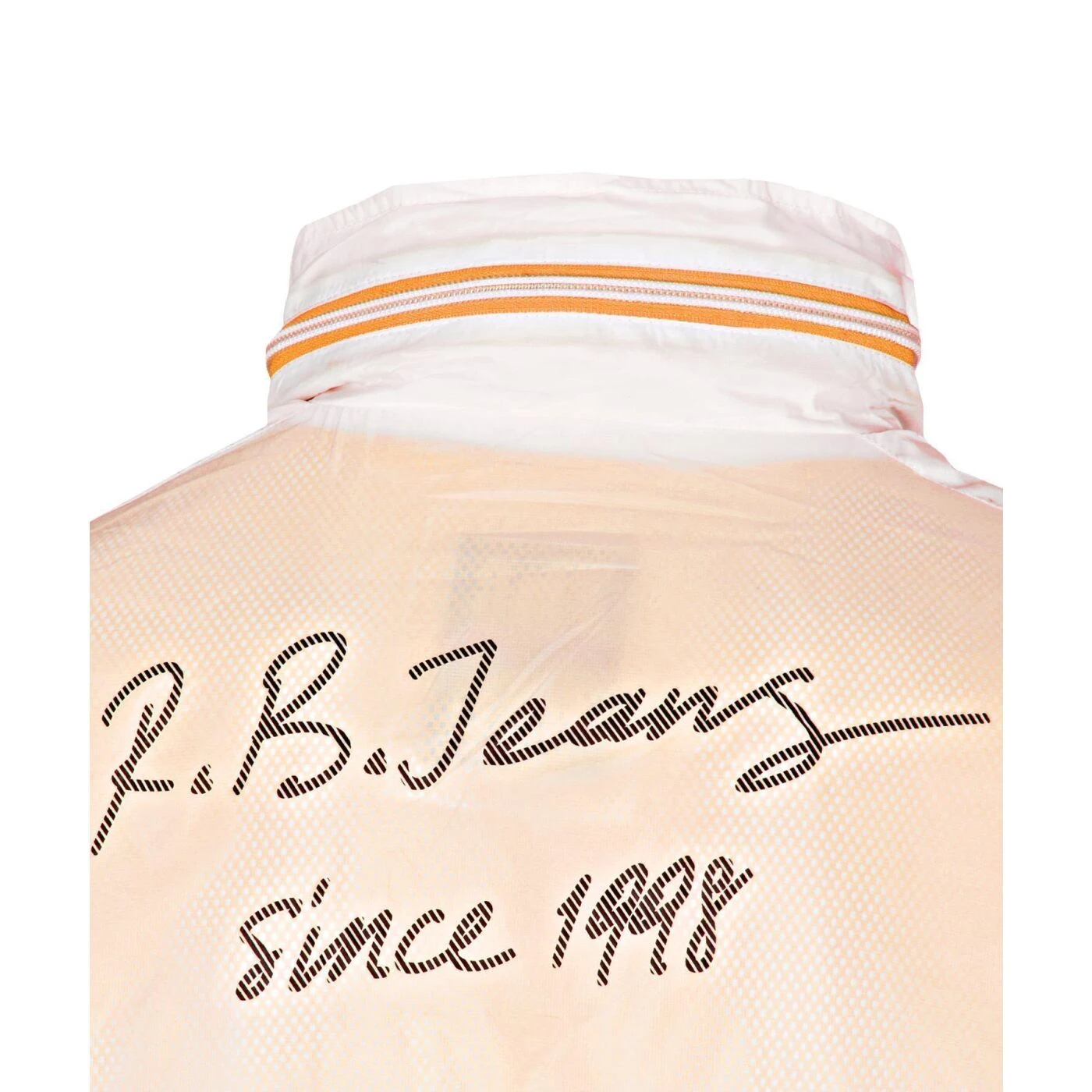 Logoprint auf Brust und Rücken, Stehkragen mit Reißverschluss um die integrierte Kapuze zu verstauen.